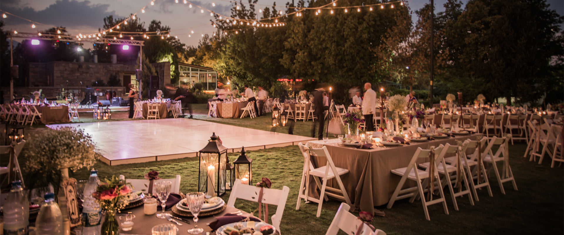 Rent a dance floor for people to have fun and let their hair loose. This way, you will have a separate area for dance, or it will get difficult for the ladies in heels to dance on the grassy lawn.