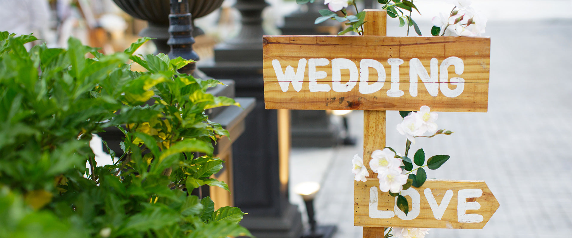 A simple sign is that piece of décor that makes a huge impact. They add a personal touch by welcoming your guests and directing them to the reception area or even to the other events that you would be organizing on your special day.
