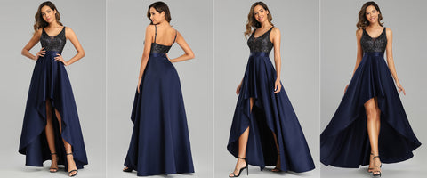 If you want to shine in a party so as to have a captivating look. Then this dress is perfect to give you a sexy look. It is featured with V-neckline in which you can enhance your upper body and with an asymmetric skirt you can show off your sleek legs as well.