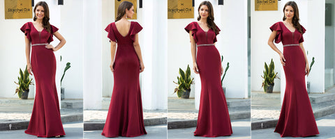 Elegant V-Neck Flutter Sleeves Bridesmaid Dress