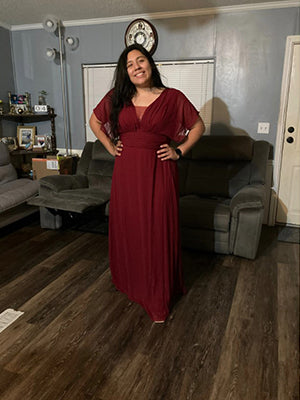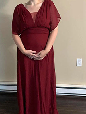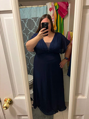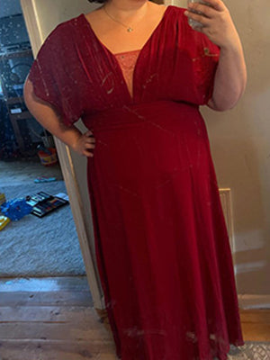 Featuring a double V neckline, a flowy skirt and ruffle sleeves, this plus size party dress is a perfect choice for people who are looking for a classic look. We think it's perfect for evening party, cocktail, prom, homecoming, graduation, weddings, and any other formal affair!