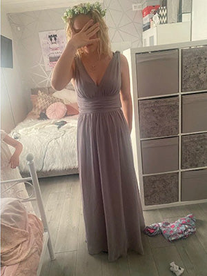 Elegant Double V-Neck Maxi Long Wholesale Bridesmaid Dresses