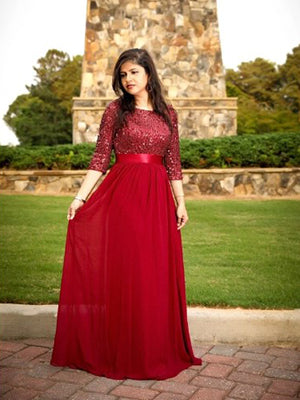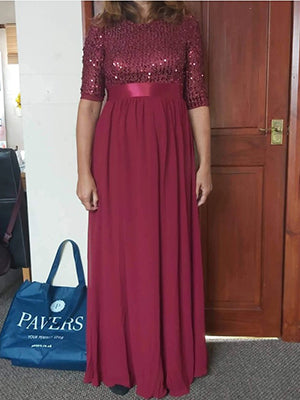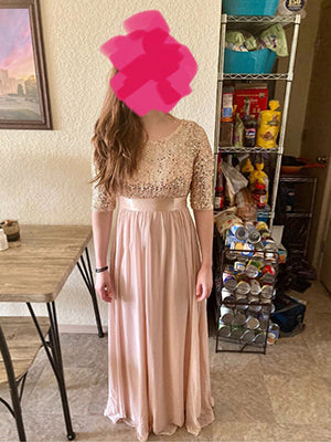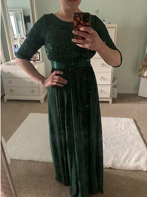 Elegant Round Neckline 3/4 Sleeve Sequins Patchwork Wholesale Evening Dress