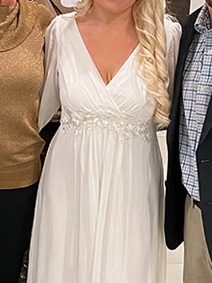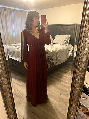 This classy and stunning deep V-neck formal dress is for those women who want to look sexy without doing any effort. This dress has an elegant style as it features long lantern sleeves with cut-out design and gorgeous applique design on the waist. You would look absolutely lovely by wearing this gorgeous dress.
