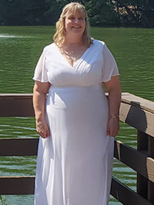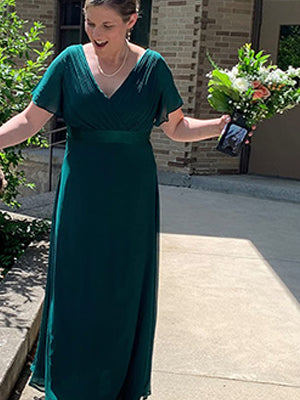 This plus size evening dress features a v neckline, empire waist, flutter sleeves, and subtle high low hemline. It's perfect for evening party, cocktail, prom, homecoming, graduation, weddings, and any other formal affair!