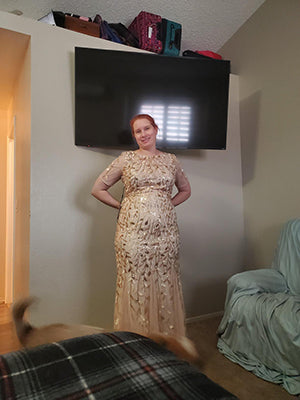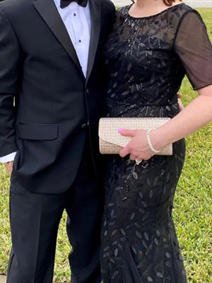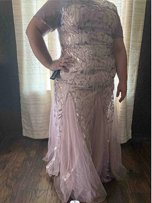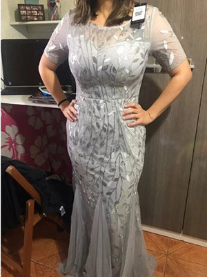 This plus size sequined tulle dress oozes romance with its shimmery leave design and a sheer round neckline. It is a perfect choice for people who are looking for an elegant look, but its delicate details add just enough flair to show your taste. Suit for evening party, cocktail, prom, homecoming, graduation, weddings, and any other formal affair!