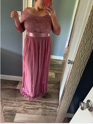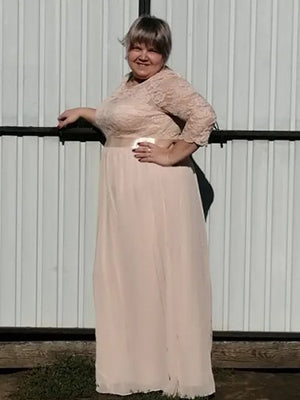 Plus Size Lace Wholesale Bridesmaid Dresses with Long Lace Sleeve