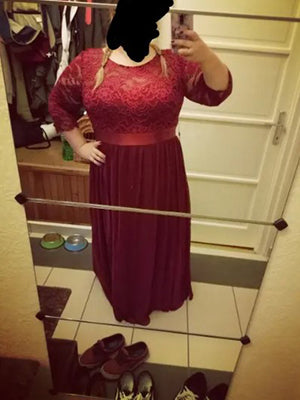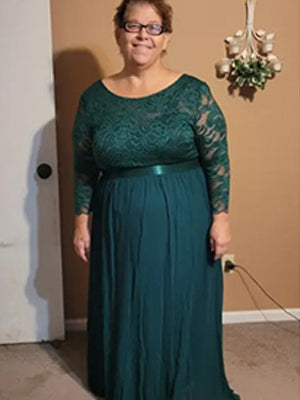 This plus size evening dress features a figure-flattering ruched waist and a long sleeve lace bust. The formal floor length of the dress coupled with the classic colors makes this dress perfect for any formal affair. It's perfect for evening party, cocktail, prom, homecoming, graduation, weddings, and any other formal affair!