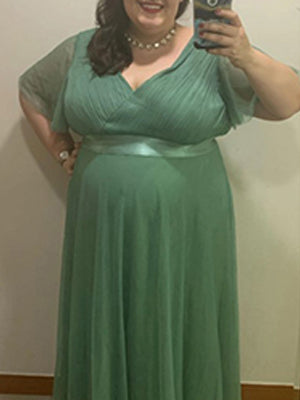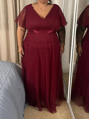 Plus Size Women's V-Neck Floor-Length Wholesale Bridesmaid Dresses