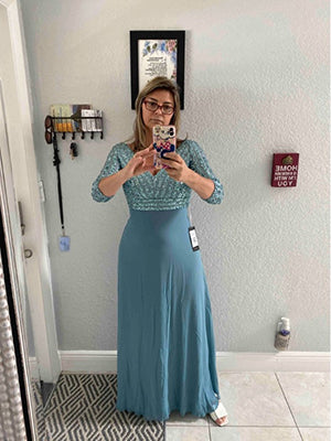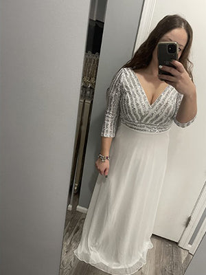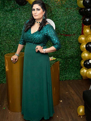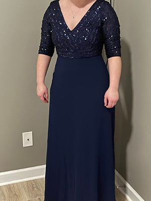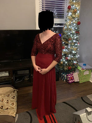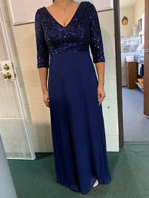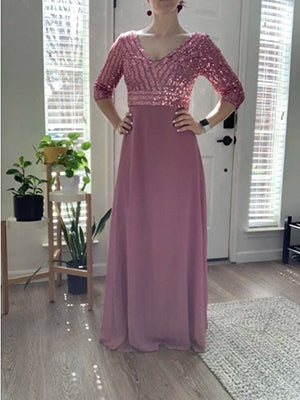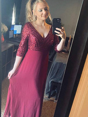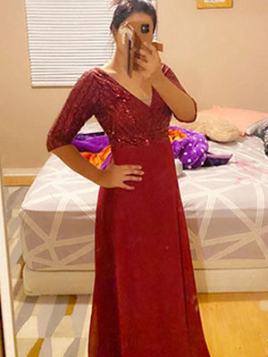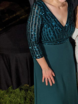 Sexy V Neck A-Line Sequin Wholesale Evening Dresses With 3/4 Sleeve