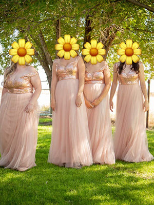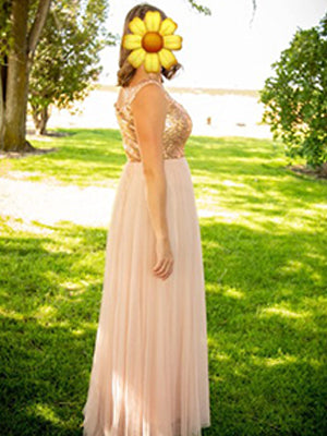 Wholesale High Waist Tulle & Sequin Sleeveless V Neck Evening Dress