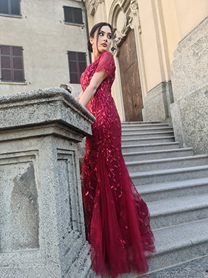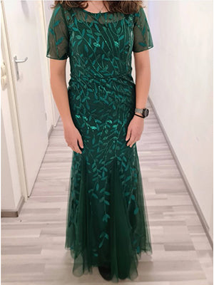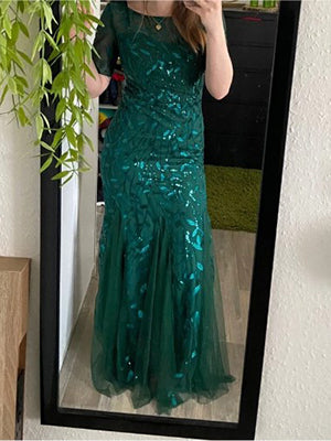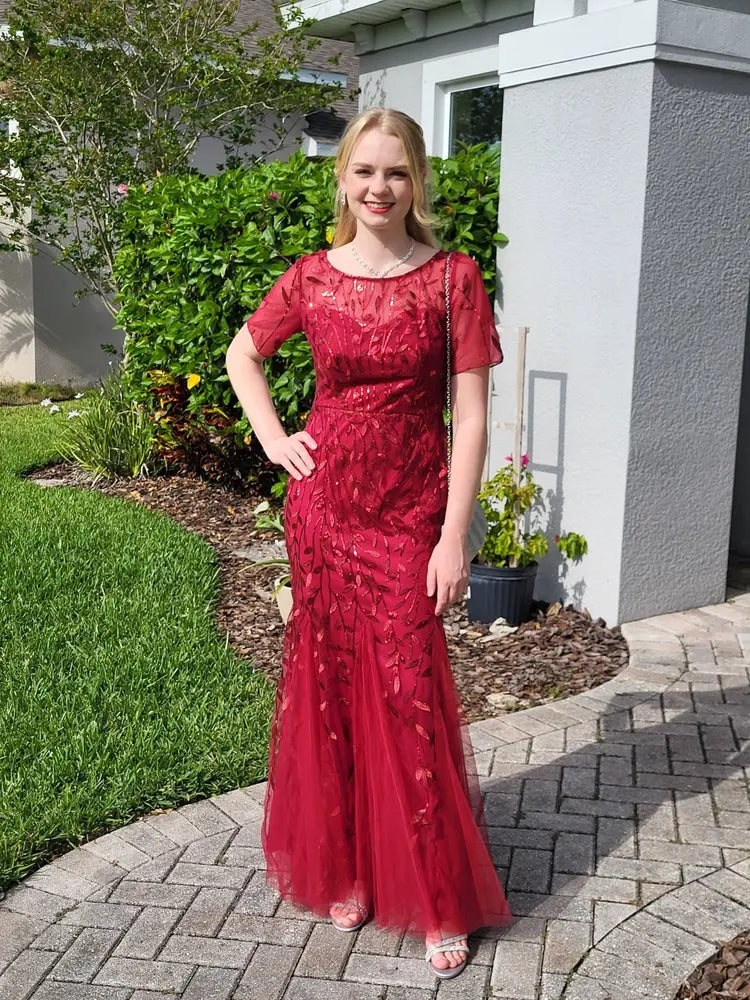 This gorgeous sequined tulle dress oozes romance with its shimmery leave design and a sheer round neckline. It is a perfect choice for people who are looking for an elegant look, but its delicate details add just enough flair to show your taste. Suit for evening party, cocktail, prom, homecoming, graduation, weddings, and any other formal affair!